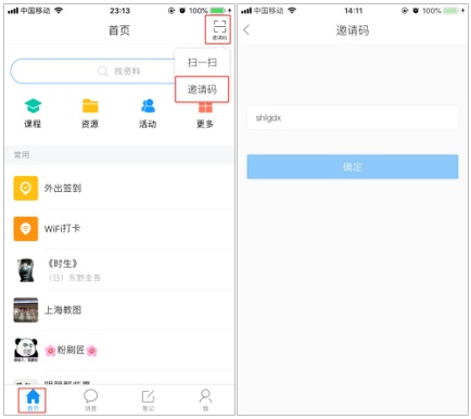 3.活动入口:点击下方“首页”,点击右上角“邀请码”,点击下拉菜单“邀请码”,输入shlgdx。