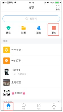 当我们再次登录时,可以通过以下方式来进入活动主页:点击下方“首页”,点击“更多”。