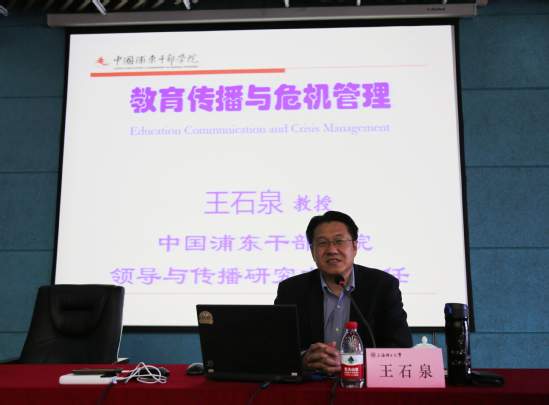 4月23日上午,浦东干部学院领导与传播研究中心主任王石泉教授应邀作了《教育传播与危机管理》的专题辅导报告。他从信息时代对教育的影响、新时代教师的综合素养、教育机构的媒体关系、全媒体时代的教育传播、教育系统的危机管理这五个方面系统全面地展开讲述,为辅导员们开展思政教育工作提供了现实指导,提高应急处置能力。