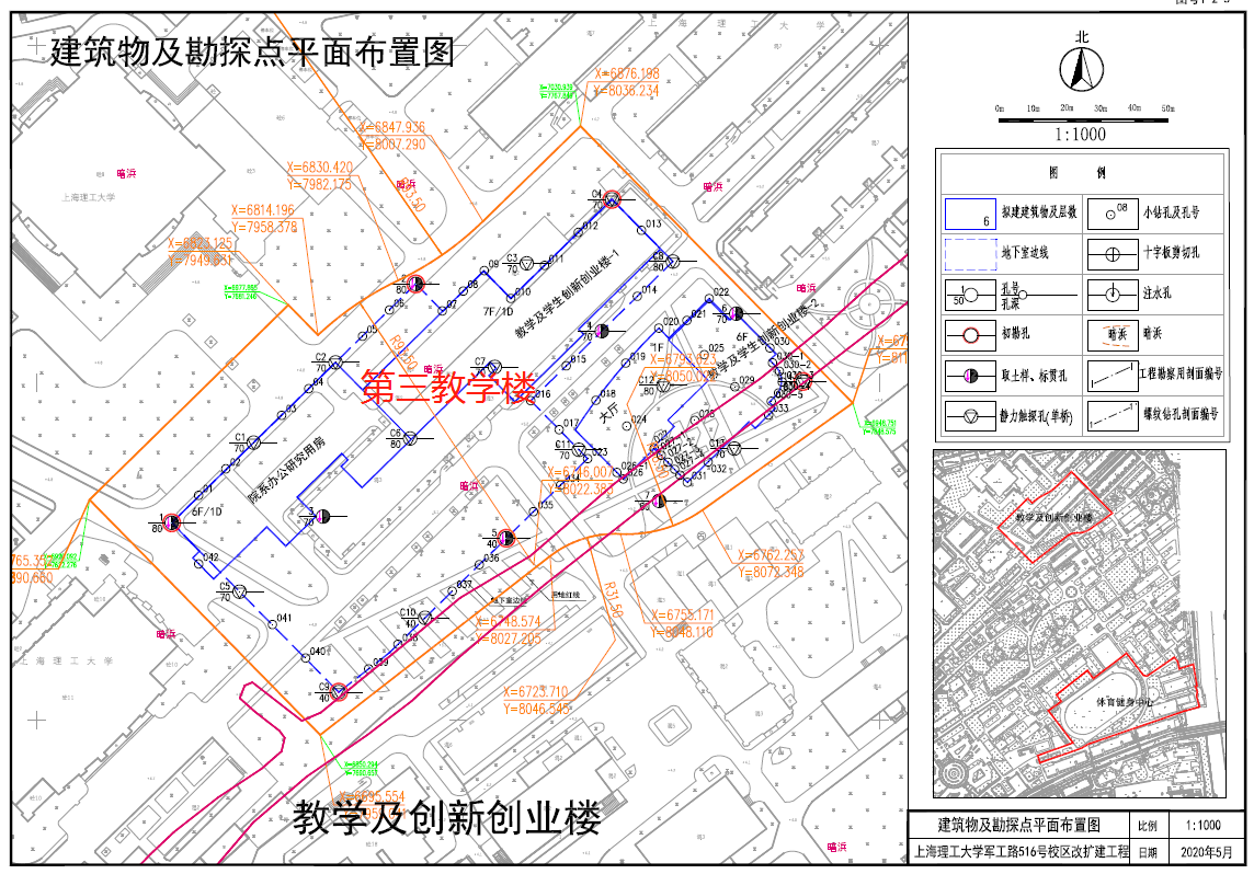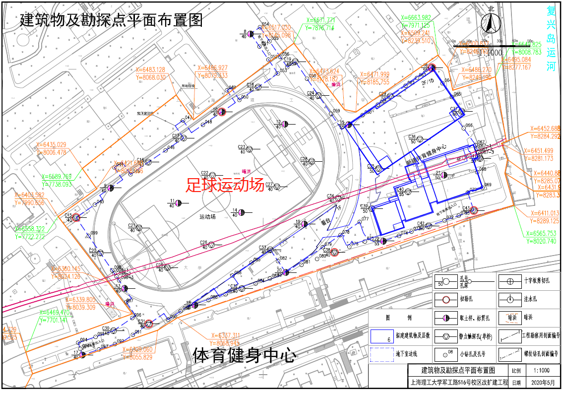 金沙官网军工路516号校区改扩建工程将于2020年下半年启动实施,建设内容有:新建一幢教学楼、体育健身中心(含游泳馆)以及地下停车库。为有效推进工程前期工作,勘察单位计划将于2020年6月6日进场施工,预计6月14日钻探施工完成,施工时间为早7:30至晚19:00。施工范围分为两个区域(见附图):1、第三教学楼周边道路、绿化区域;2、北校区室外足球场内及周边道路、绿化区域。