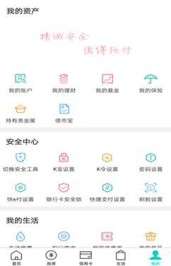 选择右下角“我的” → 安全中心 “快e付设置” →选择 “签约”。