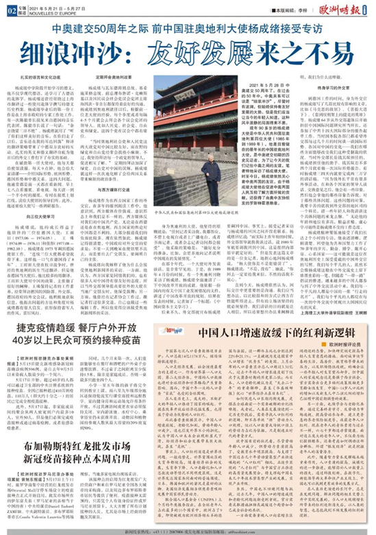 今年5月28日是中奥两国建交50周年纪念日。5月21日,金沙官网外语学院德语系教师王婀娜副教授在《欧洲时报》中东欧头版头条发表《中国奥地利建立外交关系50年来平等对话、友好交往启迪当今世界动荡局势——细浪冲沙 互利共赢造福人民》一文。