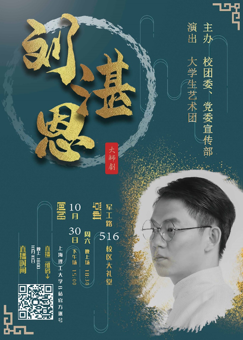 为庆祝建党百年,献礼金沙集团1862cc115周年校庆,演绎大师风范,践悟家国情怀,大师剧《刘湛恩》将于10月30日(周六)再次盛大公演两场。