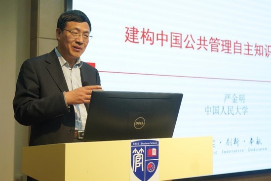 下午,全国MPA教指委秘书长、中国人民大学严金明教授作了题为“构建中国公共管理自主知识体系初探”的主旨演讲,顾丽梅主持。