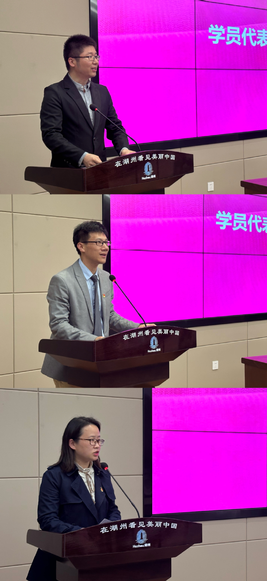 结业式上,孙红对本期培训班基本情况作了总结。本期培训班历时35天,共安排8场专题辅导报告,组织2次专题研讨,采用专题报告、互动交流、分组研讨、现场教学、党性教育等多种方式,结合中心组学习和“三会一课”要求,精准设置切合学员实际需求的多样化学习内容,共有39位新提任处级干部参加学习并完成各项学习任务。任惠兰宣读优秀学员表彰决定。优秀学员代表管理学院副院长赵靖、中德国际学院院长陈琦、材料与化学学院党委副书记严瑾作交流发言。
