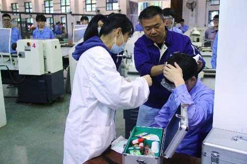 工程实训中心是金工实习教学过程实施的实践训练场所,集安全与教学于一体,日常上课密集、学生人数多、机械类器械操作频繁,此次演练以真实的实训教学现场为背景,以假设学生因绊倒造成头部撞到车床而受伤为切入点,师生共同开展安全急救,以检验师生应对安全事故处置的应急意识和掌握程度,时刻警钟长鸣,始终将安全教育贯穿实践教学的全过程。近年来,在学校实验室管理处、保卫处等相关职能部门支持下,工程实训中心秉持以师生安全为本的理念,加快设备维护升级、更新安装安全设施、翻新修缮实训场地等,守牢实训实践的安全底线,为创新工程实训教学做好安全保障。