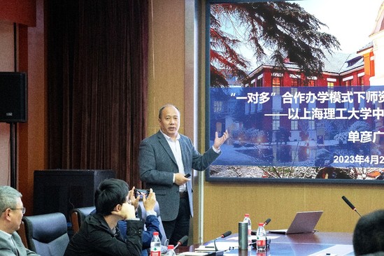 中英国际学院常务副院长、代理执行院长单彦广应邀参加了中外合作办学机构联席会专家委员会第一次会议,并在高水平师资队伍建设分论坛上作题为“‘一对多’合作办学模式下师资队伍建设的探索与实践——以金沙集团1862cc中英国际学院为例”的报告,报告围绕“合作办学发展趋势”“合作办学机构师资现状”“中英国际学院师资现状”“面临的挑战与解决对策”四个方面进行交流发言。单彦广介绍了学院发展历史、办学模式、专业建设、国际认证、学术科系、师资管理、招生特色等情况。他表示,高质量师资队伍是中外合作办学的源头活水。中外合作办学课程和教学实施的主要承担者是教师,教师在人才培养过程中始终起着主导作用。对于在师资管理方面所面临的挑战,单彦广立足中英国际学院办学实践,提出了四个解决对策,即创新绩效考核机制、打通职业发展通道、建设学术发展平台、建立稳定交换机制,进一步激发教师队伍活力,加快合作办学高水平师资队伍建设,报告获得了与会领导和代表们的高度肯定。