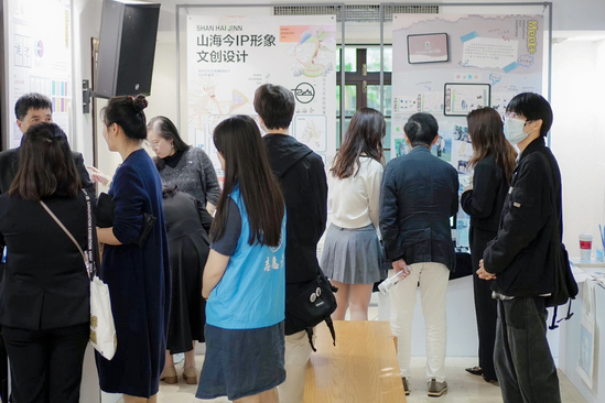 版艺学院不断拓展毕设展的功能和作用,向外链接更多资源,推进校地融合、产教融合、国际合作,如加入全国联合毕业设计“艺术乡建”项目,助力浙江宁海县岭口村乡村更新,浦振飞同学设计的场景被村委会和组织方选中,并正在推动落地;与法国南特大西洋设计学院大学举行联合毕业设计,关注全球范围内的人口老龄化、儿童福利问题、社会可持续等问题,该项目中方导师李文嘉和郑振华老师表示:此次国际合作毕设项目将国际先进设计理念与中国国家战略相结合,充分展示了两国在设计领域的创新与合作精神,共同为实现用设计引导美好生活而努力,培养学生成为具有国际视野和交流能力的人才。
