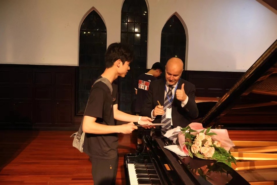 5月25日晚,德国文化交流中心品牌活动之一的“德奥之声“音乐会系列——意大利钢琴家Antonio Di Cristofano独奏专场在音乐堂举办,中心有幸邀请到了来自意大利的著名钢琴家Antonio Di Cristofano和来自上海音乐学院附中的唐瑾教授。唐瑾教授作为本场音乐会的特邀嘉宾也是本场音乐会的专业导赏和意大利钢琴家一起,共同为上理师生带来了一场美轮美奂的德奥浪漫主义钢琴盛宴。