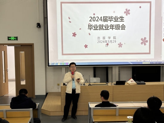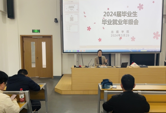 为进一步推进、落实2024届毕业生就业相关工作,3月29日下午,出版学院在线上线下同步召开了2024届毕业生就业推进会。学校学生就业指导中心副主任李群辉,学院党委副书记王蕊,学工办主任陈德林,毕业班辅导员以及毕业班学生参加了会议。